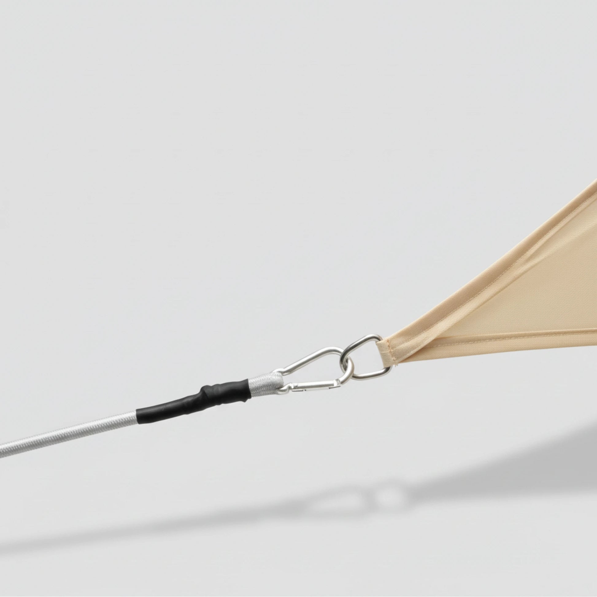 Die dauerelastische Zugkraft hält das Sonnensegel gleichmäßig unter Spannung und unterstützt eine saubere, stabile Montage. Bei schräger Aufhängung wird der Stoff straff gehalten, wodurch Durchhängen und Faltenbildung reduziert werden.